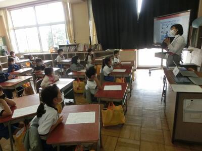 5月14日(金)に、生活科で町探検に行きました。焼きそばの手塚屋さん、JA二宮アグリセンター、物部郵便局、物井駐在所の4か所を回りました。施設内を見学したり、質問をしたりして、真剣にメモを取っていました。初めて知ったことがたくさんあった町探検となりました。