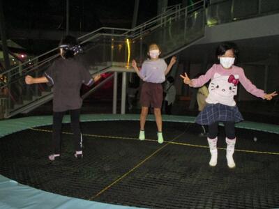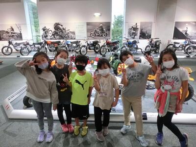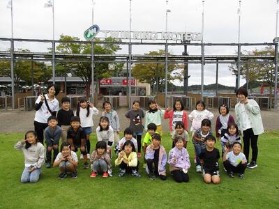 1・2年生の遠足で「ツインリンクもてぎ」に行ってきました。ネットの森SUMIKAでは、幻想的な照明の中、思いっきりアスレチックを楽しみました。午後は、予定していたDOKIDOKIのアスレチックが急遽点検のためできなかったので、サーキットコースの体験バス走行になりました。通常は入れないサーキットコースをバスで走ったり、降車して傾斜を体感したりして、貴重な経験をすることができました。最後は、ホンダコレクションホールでレーシングカーなどのいろいろな車を見学して、楽しみました。(※集合写真撮影時のみ、マスクを外しました。)