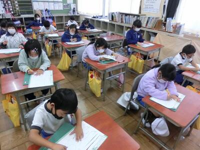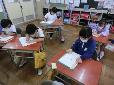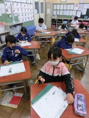 図工「まどからこんにちは」の学習に入り、初めてカッターを使いました。使い方をよく確認したあと、切る練習をしました。みんな真剣に集中して取り組んでいました。来週から、今日の練習を生かしてカッターを使い、作品を作っていきます。