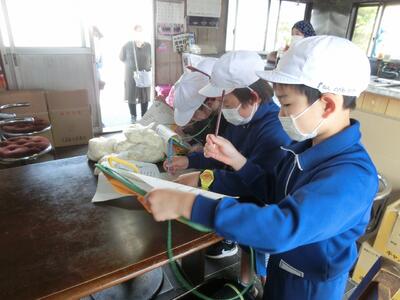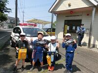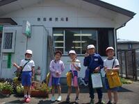5月19日に生活科の学習で「町探検」に行きました。駐在所、郵便局、二宮アグリセンター、手塚屋さんの4か所を回りました。ボランティアの方々に見守られながら、地図を片手に迷うことなく目的地に行くことができました。初めて見るものに興味津々の子どもたちでした。
