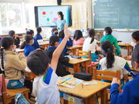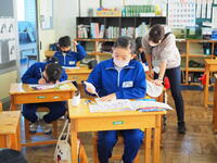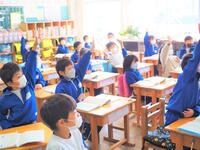 1年生 担任の先生の話をよく聞いて、毎日、真剣にそして楽しく勉強していました。漢字もたくさん覚えました。休み時間にクラスみんなで遊んでいる姿をよく見ました。仲良く、かしこくなった1年生です。