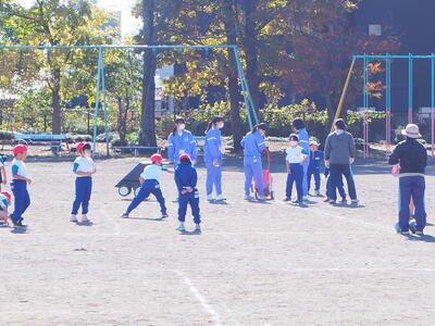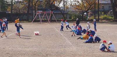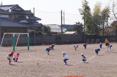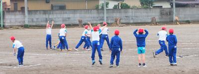 1年2組 体育 2人組で1個の玉を取りました。