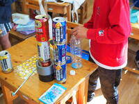 ふる、たたく、はじくで音のなる楽器を作りました。