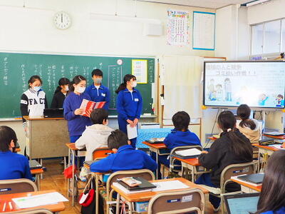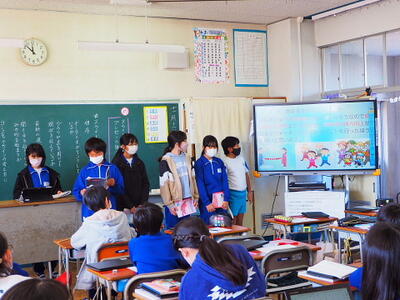 4年生 石川県の鹿島小学校の4年生と2回オンラインで交流しました。募金も呼び掛けてくれました。4月からは5年生、委員会活動が始まります。4年生の皆さんなら大丈夫、いい5年生になると信じています。
