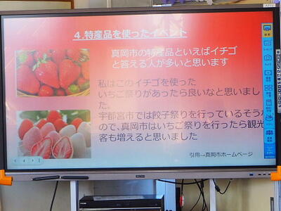 人のつながりや環境にテーマを絞り、真岡市の将来の発展を考えた発表ができました。会議・研修来週も残りのグループが発表します。来週の発表も楽しみです。キラキラ