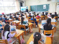 5年1組 道徳 車椅子のテニスプレーヤー国枝慎吾さんの姿を希望と勇気、強い意志を学びました。校内公開授業で多くの先生が参観に来ました。