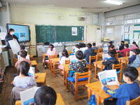 生活科 先日の「町たんけん」で行くことができなかった「消防署」と「警察署」の方をお呼びしてお話を聞きました。2年生の質問に分かりやすくていねいに答えてくれました。