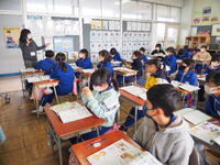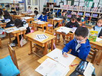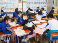 1年生 担任の先生の話をよく聞いて、毎日、真剣にそして楽しく勉強していました。漢字もたくさん覚えました。仲良く、かしこくなった1年生です。