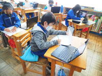 3年生 3年生になって新しく始まった理科の実験や社会科の見学、総合的な学習の時間を頑張っていました。校長先生がすごいなあと思ったことは、タブレットパソコンを総合や国語の勉強でよく使っていたことです。自分が調べたことをスライドでまとめていたのがすばらしかったです。4月からは4年生、上学年の仲間入りです。頑張ってください。
