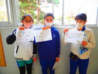 2年生 かけ算九九を覚えましたね。図工の絵や版画、工作もとっても頑張りました。全員がとっても素敵な作品を作ることができました。4月からは3年生です。中学年の仲間入りをします。頑張ってください。