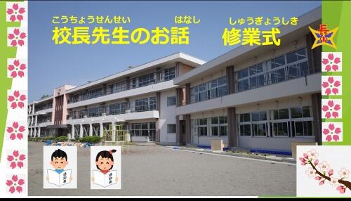 一年生のみなさん、最後までよくお話が聞けました。明日から元気に学校にきてください。以上で校長のことばとします。