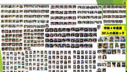 長田小は昔、中村小の分校で、長田分校でした。長田分校が長田小になったのは、昭和53年、今から45年前でした。開校当時児童数は289人。開校から2年後に校歌、校章、3年後に体育館ができました。開校3年後の児童数は386人と今と同じくらいの人数でした。令和2年に新校舎ができ、校舎が大きくなりました。校章に込められた願いについても話をしました。(詳しくはスライド画像をご覧ください。)今年は、開校から46年がたちますが、開校当時の地域や保護者、学校職員の願いや思いを再度振り返ることで、長田小のあゆみの中に今の自分たちも存在することを実感し、未来に進んでほしいと思い、お話をしました。
