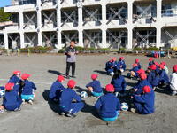交通安全教室を行いました。登校班ごとに学校周辺の道路を実際に歩きながら、安全な登下校の仕方や横断歩道の渡り方について、交通指導員さん、長田交番勤務の警察官など、ふだん登下校でお世話になっている方々に様子を見ていただきました。