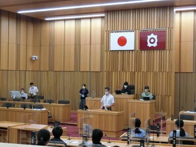 1学期や夏休みに練習をして、真岡市役所5階にある、議場で行いました。