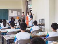 個人懇談については、手指消毒、検温、マスク着用、机といすの消毒、教室の換気、アクリル板の設置などの感染防止対策を行っています。