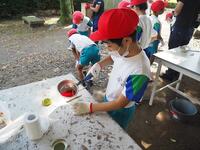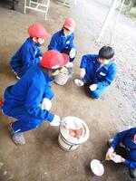 3回に分けてローラーで色を付けます。難しいですが頑張っています。