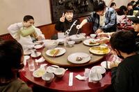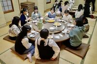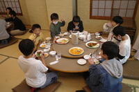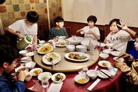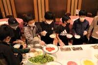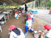 1日目の昼間の活動が終了し夕食を食べました。陶芸・埴輪作り・焼き板・本流遊びと充実した活動ができました。