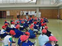 後半は、芳賀赤十字病院からお二人の先生に来ていただき、食物アレルギー対応ついての研修を行いました。アレルギー症状への対応の手順、エピペンの使い方、症状のチェックの仕方を教えていただきました。代表の先生が役割演技をするロールプレーも行いました。命を守る大切な研修ができました。