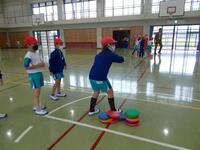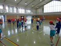 1年1組 体育 体育館で走る・跳ぶ・くぐる、基本の運動を行いました。