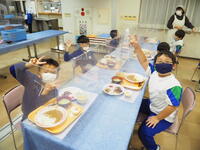 今日から長田小に、教育実習生(本校の卒業生)と転校生が新しく加わりました。給食の時間には2人の紹介がありました。とても緊張していたことでしょうに、堂々とした挨拶をしていました。一日も早く長田小に慣れて、すてきな思い出をたくさんつくってほしいです。挨拶の後、どのクラスからも温かい拍手が起こっていました。