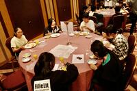 研修2つ目は、国語の指導法研修です。各教室の掲示物として毎月配布されている「季節の言葉」「こども俳句」を題材として有効に活用し、楽しく深く活発な言語活動を展開するをテーマに、提示された こども俳句を読んで 自由に鑑賞文を書き、グループで読み合ったり、作者がその句を詠んだ状況について想像し、話し合ったりしました。より深い感想を児童から引き出すには どのような発問が効果的か等についても考えました。