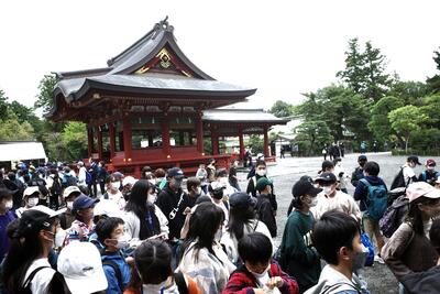 自然教室のテーマは「自然と遊ぼう」です。6年生は3年生の時以来の宿泊学習です。6年生は、昨日からとっても楽しみと話していました。長田小は自然教育センターが学区内にあるため、徒歩で移動しました。楽しい2日間を過ごしたいと思います。