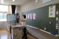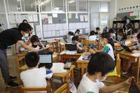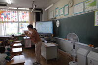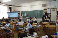 ICT支援員の先生に来ていただき、タブレットPCを使って漢字の学習をしました。漢字の書き順を練習してテストまでやりました。自分のペースで進めることができるので、どの子も学習に進んで取り組んでいました。