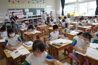 1年2組 国語 「どうやってみをまもるのかな」のテストを真剣に取り組んでいました。
