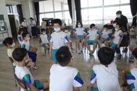 体育館に集まり、来週〔9/15木・16金〕に自然教育センターで行われる自然教室の計画を立てました。自然教室は3年生以来3年ぶりの行事で、今からワクワクしている6年生でした。