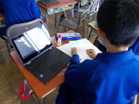 本日の2時間目に、4年生は、総合的学習の時間に社会福祉協議会と学校をオンラインで結び、「福祉」についての学習を行いました。初めに、福祉のイメージを確認した後、社会福祉協議会の仕事として、どんな取り組みをしているのかのお話をお聞きしました。講師の先生が近くにいなくても静かに熱心に学習に取り組むことができました。