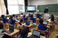 ICT支援員の先生が毎月3回来て、授業のサポートをしていただいています。写真は2年1組の授業の様子です。2年生は初めて、自分のアカウントでログインする学習をしました。キーボードでローマ字を入力することが難しかったのですが、頑張ってログインすることができました。
