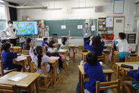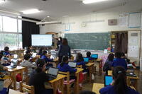 ICT支援員やALTの先生と一緒に楽しく学習を進めていました。