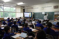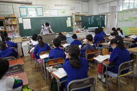 1年生は入学して1か月が過ぎました。1・2組とも先生の話をしっかり聞こうと頑張っています。