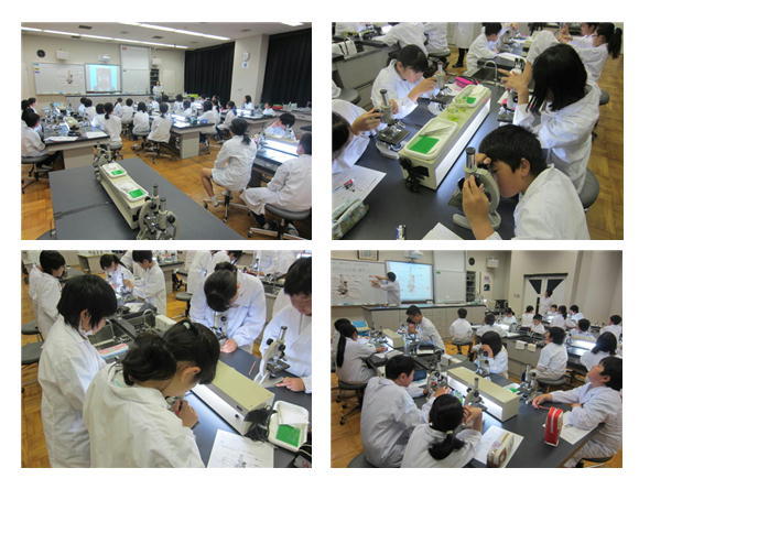 水中の微生物のアオミドロやミジンコを顕微鏡で観察しました。