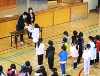 修了式が体育館で行われました。 修了証書をいただいた後、校長先生からは1年間のめあての振り返りについて、児童指導主任から春休みの生活についての話がありました。