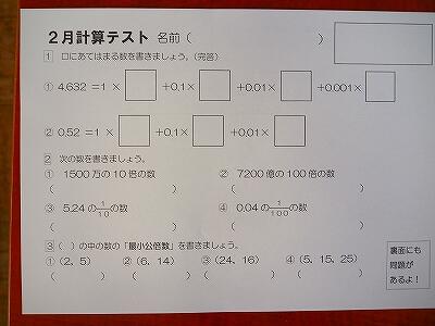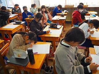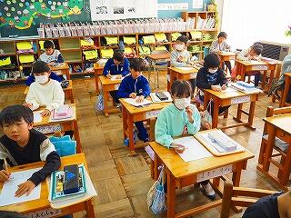 ながたタイム(朝の学習の時間)に全校一斉計算テストを実施しました。今年度最後の計算テストです。どの学級も一生懸命考えて問題に答えていました。