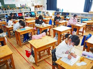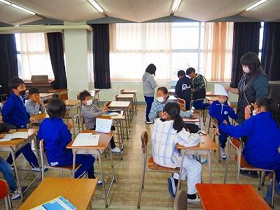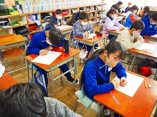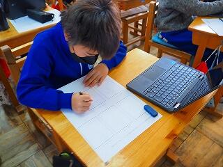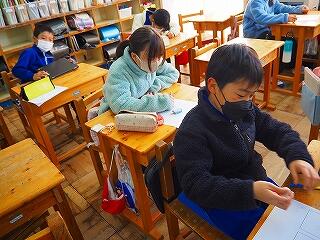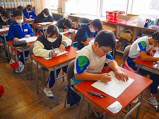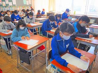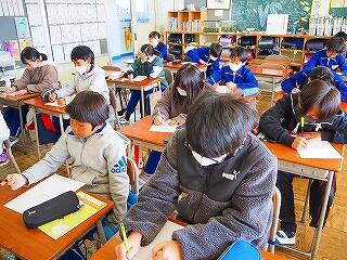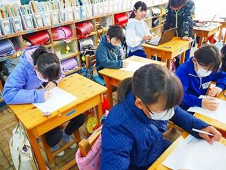 4年生は、昨年12月に石川県中能登町鹿島小学校の4年生とオンラインで交流しました。4年生は、今回の能登半島地震で被害を被った鹿島小学校の4年生に励ましのメールで送ることにし、応援メッセージを作成しました。