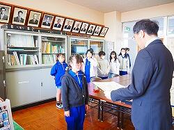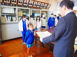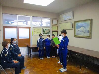 本日「こども110番の家」訪問がありました。日頃お世話になっている「こども110番の家」を訪問してお礼の手紙を渡しました。教職員も一緒に歩いて通学路の危険個所の確認を行いました。