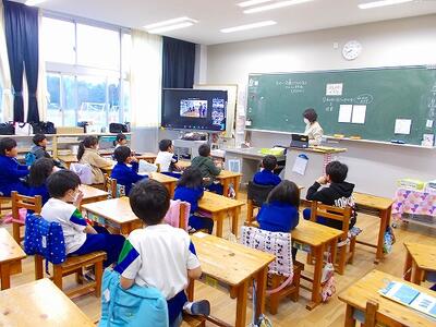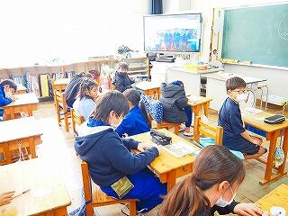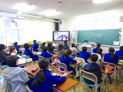 4年生は、昨年12月に、500km離れた石川県の中能登町立鹿島小学校の4年生のみなさんとオンライン交流授業を行い、お互いの「ふるさとのよさ」を確認しました。