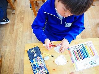 5年生が中心になって、縦割り班の6年生に卒業を祝うメッセージを書きました。