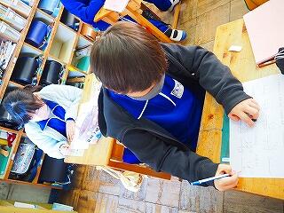 昼休みに、通学班地区ごとに集まり、来年度の通学班編制を行いました。
