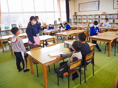1年生は、国語の「おはなしをかこう」の授業で、自分だけの昔話を書きました。そして、完成した昔話を6年生に紹介しました。交流後、1年生は「緊張したけど楽しかった。」と喜ぶ姿が見られました。