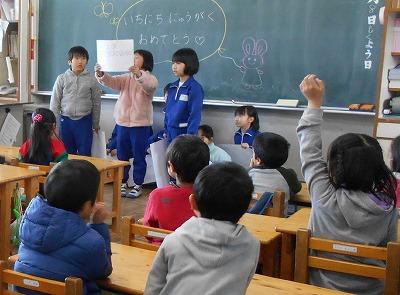 1年生になって、できるようになったことを授業参観で発表しました。「家の人に見てもらうんだ。」と言って、一生懸命に練習していました。グループの友達と協力して練習に臨む姿は頼もしく感じました。また、子どもたちの発表を見て成長した姿も見られました。