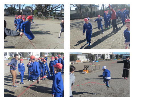 本日の業間活動「体力つくり」は、クラス事に長縄跳びをしました。