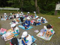 1年生の校外学習は、真岡市第一給食センターと根本山自然観察センターに行きました。給食センターでは大きなしゃもじを持たせてもらったり、給食の準備の様子を見学させてもらったりしました。根本山でおいしくお弁当を食べました。