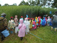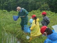 2年生の校外学習では、鬼怒水辺観察センターに、水生生物や昆虫などを採集に行きました。行く途中のバスの中では土砂降りになり活動が心配されましたが、昆虫採集も外で昼食もできました。