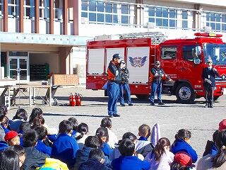 業間から3校時にかけて、火災を想定した避難訓練を実施しました。真岡西分署の3名の方に来ていただき、