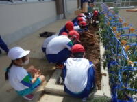 校内の緑化活動を通して、身の回りの環境を大切にしていこうという態度を育てることと、1年生から6年生までの異なる学年が同じ班を組んで一緒に活動することで、お互いに協力して活動しようとする心を育てることを目標として、この活動を行っています。