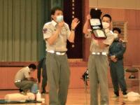 いよいよ水泳学習が始まります。学校では万が一に備えるため、芳賀広域消防西分署の救急隊の方々を講師に迎え、救急救命法の研修を6月4日に行いました。講習用の人形を使い、心肺蘇生法とAEDの扱い方を確認しました。
