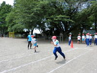 天気が良く暑い日になりましたが、元気に新体力テストを実施しました。今日は、1年、3年、6年が行いました。外では、ボール投げと50m走を、体育館では、反復横跳びと立ち幅跳びを行いました。1年生は、初めてのテストでしたが、6年生のお兄さん、お姉さんに優しく教えてもらって、元気に取り組むことができました。
